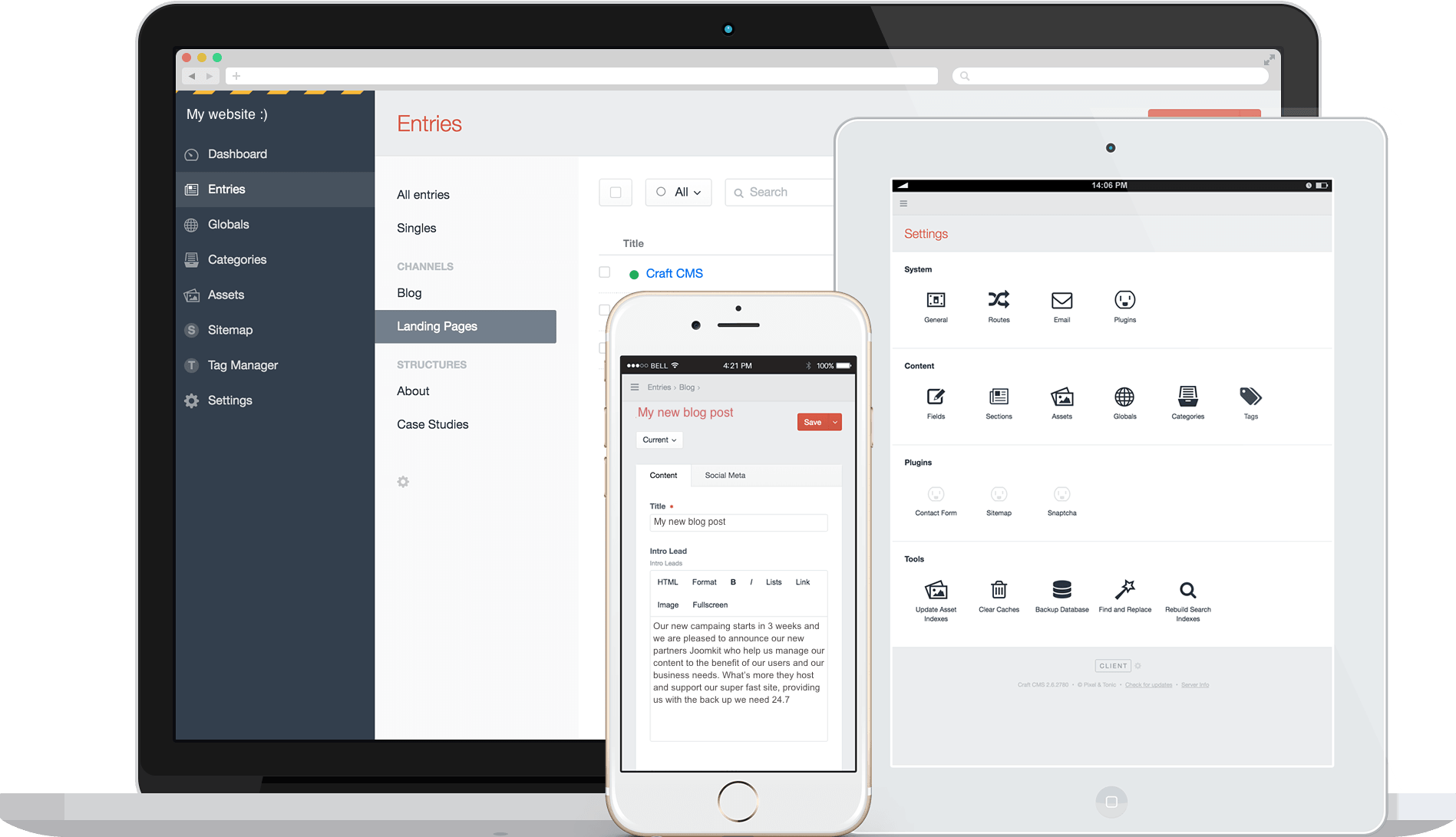 Your stories, your products, your media all controlled in a world class system that focuses on content above all else. With real-time work views, and an admin interface that gets out of your way, content managers can happily edit from phone, tablet or desktop.